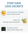 Norwegian spruce leaf extract, ginger extract, inulin, European hazel leaf extract (organic anti-hair loss component), peptides (complex, anti-aging).